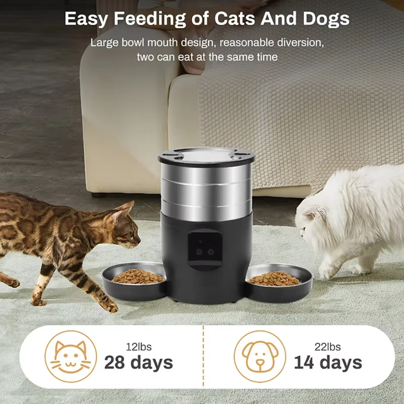 4.5L Smart Automatic Pet Feeder with Bowl, Voice Recording, Timed Quantitative Feeding & USB Power for Cats Dogs