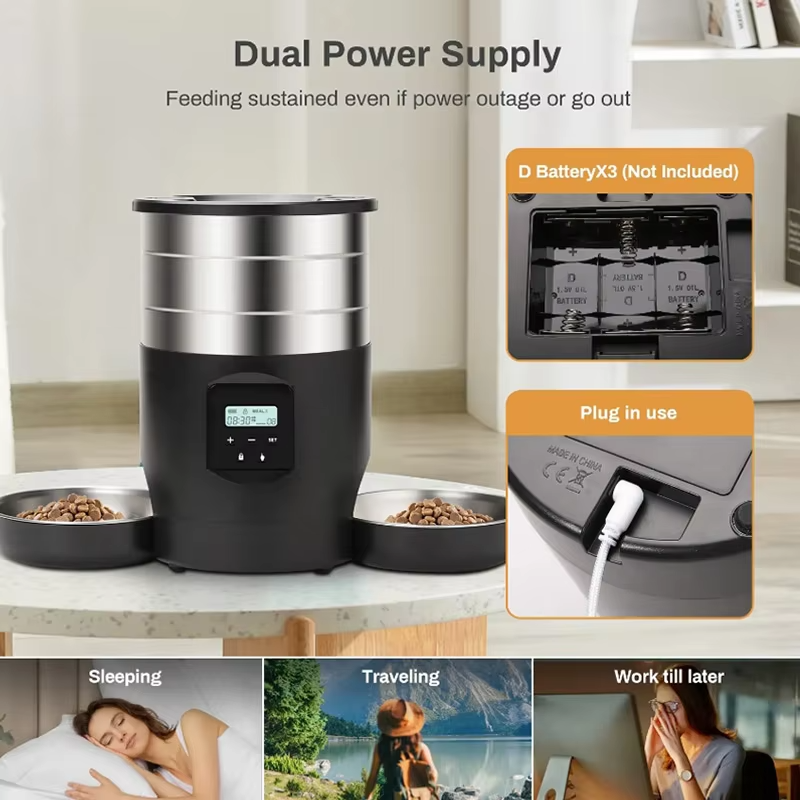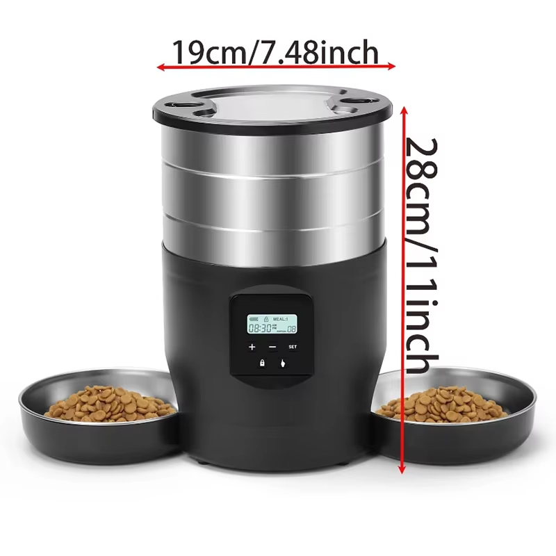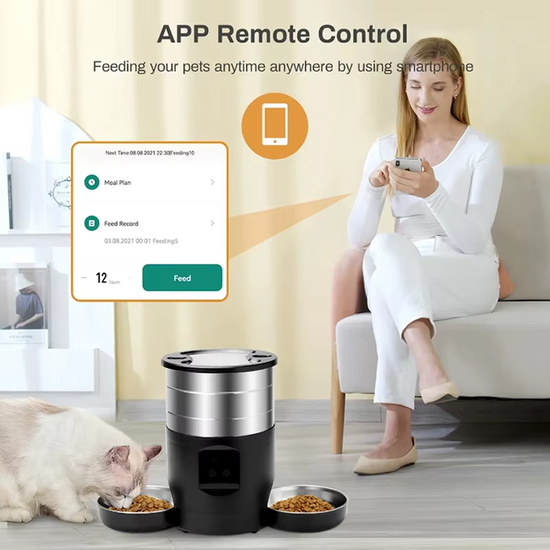 Automatic pet feeders come in two types: button-type and WiFi-type. Button-type feeders can be set directly using the buttons on the feeder, while WiFi-type feeders can connect to the Tuya app, allowing users to set feeding times and portions directly through the app.