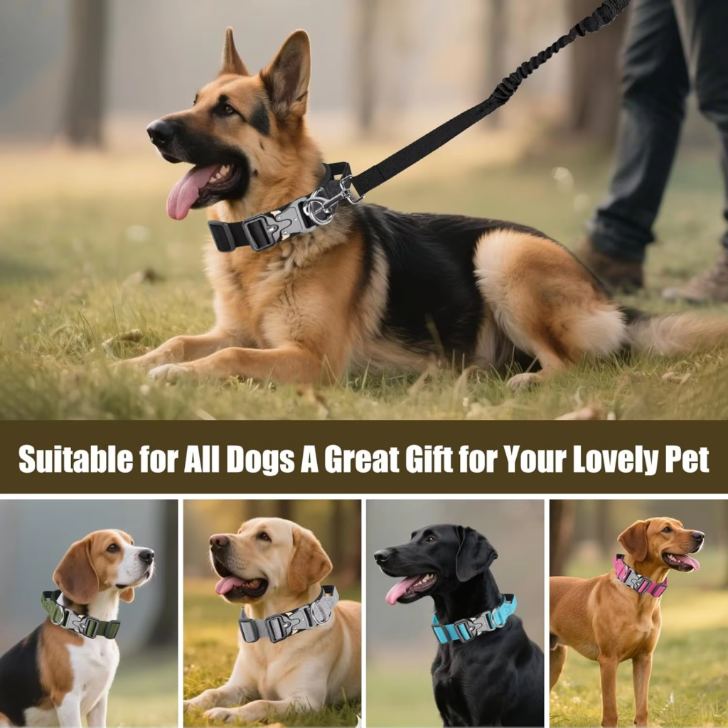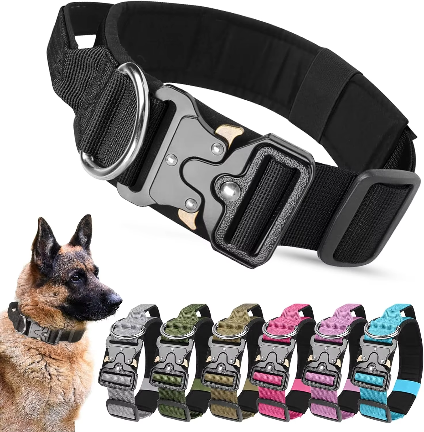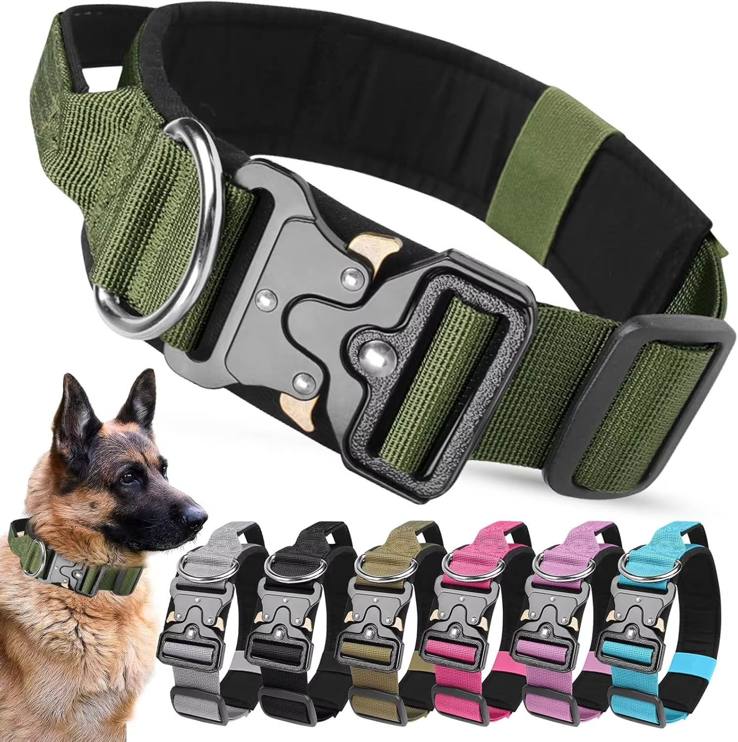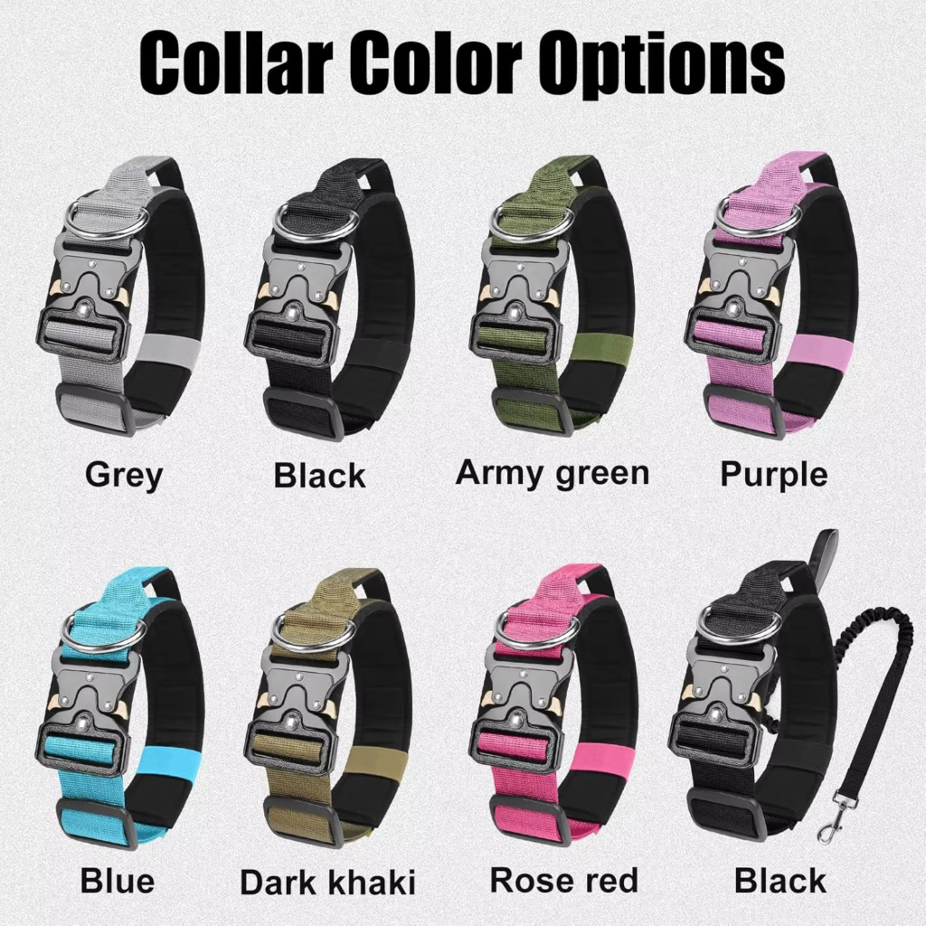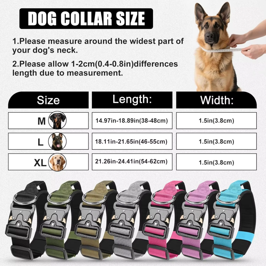 Collare per cani in nylon con fibbia in metallo, imbottito e regolabile, set con guinzaglio per cani di taglia media e grande, per addestramento.